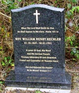 When an American Jewish historian, Jerry Klinger, discovered that Hechler was buried in an unmarked pauper's grave in London, he advocated for the installation of a headstone worthy of the influence of this godly man on modern Zionism. Love Never Fails became the channel for this campaign and a properly inscribed stone was placed and dedicated on Hechler's grave on 31st January 2007 (see below).